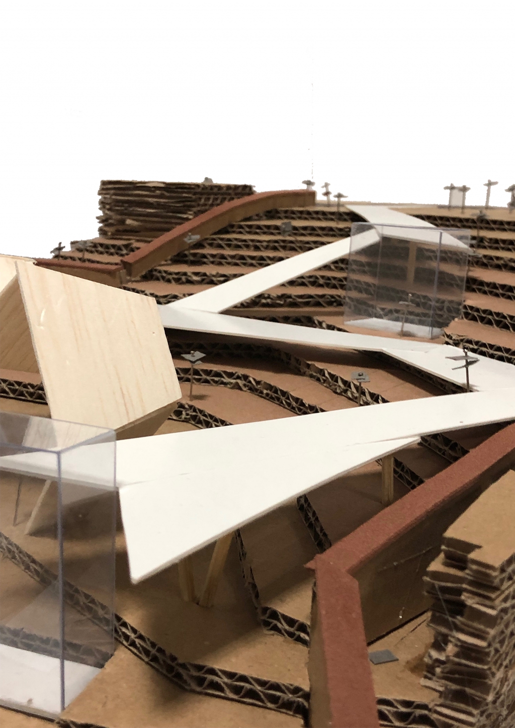 Design Studio 4'te (Promenade) yaptığımız. İstanbul Burgazada'da verilen arazi insanların sahil şeridinde dolaşım eksikliğinden dolayı promenat ve iskele tasarlamamız istendi. Adanın konumu ve vapur iskelesine yakınlığını sebebiyle yüksek eğim farkı da göz önüne alınarak yürüyüş yolu ve parkurları tasarladım. Yürüyüş yollarının yanında insanların sosyal mekan olarak kullanabileceği açık hava etkinlikleri düzenleneceği bir çok fonksiyonlu alan tasarladım. Ana merkezinde bulunan örtünün insanların altında vakit geçireceği ve manzarayı seyredeceği oturma alanlarına sahip. Tasarımda adanın konumu göz önüne alınarak iskele tasarımını hem gözlem noktası hem de geniş yürüyüş yolu olarak düşünerek tasarladım. Ve iskelenin üstünde basamaklı alanında insanların vakit geçireceği oturma alanı. Bu stüdyo, estetik, yapısal, işlevsel ve çevresel yönleri göz önünde bulundurarak kullanıcı, site ve bağlam ile ilgili mimari tasarıma odaklanmaktadır. Aynı zamanda form, yapı ve detaylandırma çözünürlüğünü geliştirmeyi amaçlamaktadır. Bu dönem boyunca, çok sayıda değişken kullanarak, öğrenciler bir bina, site ve kullanıcı arasındaki ilişki anlayışlarını artıracaktır.